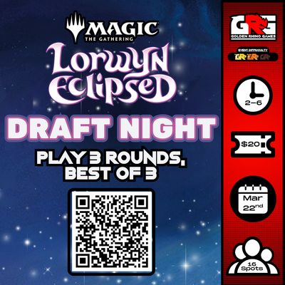 At Golden Rhino Games, we require all players to pre-register for events they plan to attend. Walk-ins will not be accepted for major events and tournaments unless specifically stated otherwise. This policy ensures we can reserve the appropriate space or cancel the event if necessary.