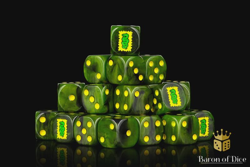 Day of the Dead, Skull Dice GREEN / BLACK 16mm SQUARE